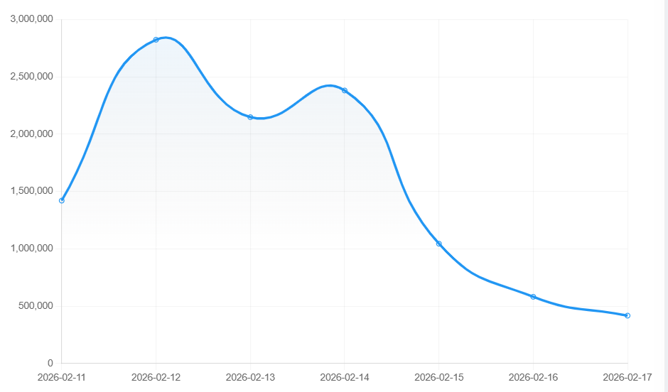 Puncak percakapan terjadi pada 12 Februari 2026 dengan jumlah engagement mencapai 2,8 juta. Intensitas perbincangan masih tergolong tinggi hingga 14 Februari sebelum akhirnya melandai pada hari-hari berikutnya.