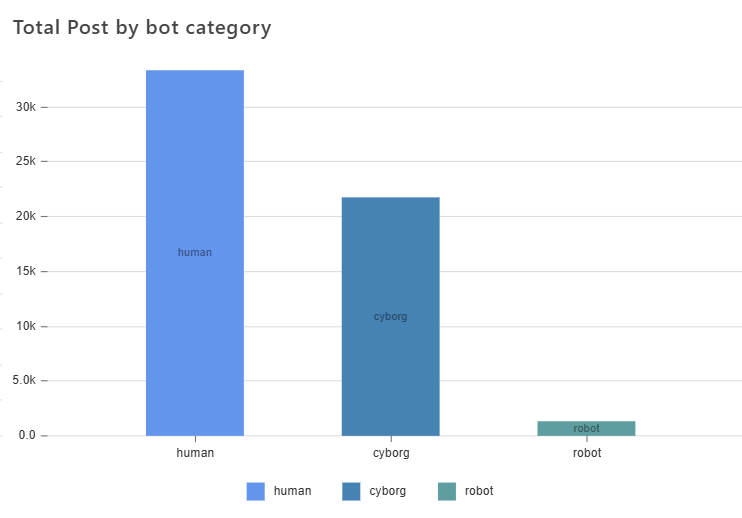 Penilaian bot score Socindex menunjukkan bahwa percakapan terkait SEAblings berlangsung secara organik. Aktivitas akun yang terindikasi sebagai cyborg atau robot tidak melebihi akun manusia. Temuan ini mengindikasikan bahwa perbincangan tersebut didominasi oleh partisipasi pengguna asli.