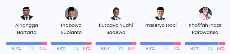 Dalam diskusi publik terkait wacana penerapan WFH satu hari per pekan, sejumlah figur pemerintah muncul sebagai aktor utama yang membentuk arah framing kebijakan. Dominasi figur-figur ini mencerminkan bahwa narasi yang berkembang masih berpusat pada perspektif kebijakan energi dan efisiensi, dengan penekanan pada dampak mobilitas terhadap konsumsi BBM.