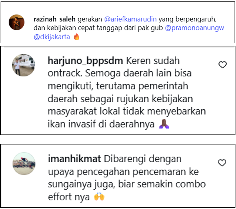 Warganet memberikan tanggapan beragam mengenai upaya dari Pemerintah Provinsi DKI Jakarta dalam pengendalian populasi ikan sapu-sapu. Mayoritas warganet mendukung program tersebut dan menilai tindakan dari pemerintah cepat tanggap dalam mengatasi urgensi lingkungan.