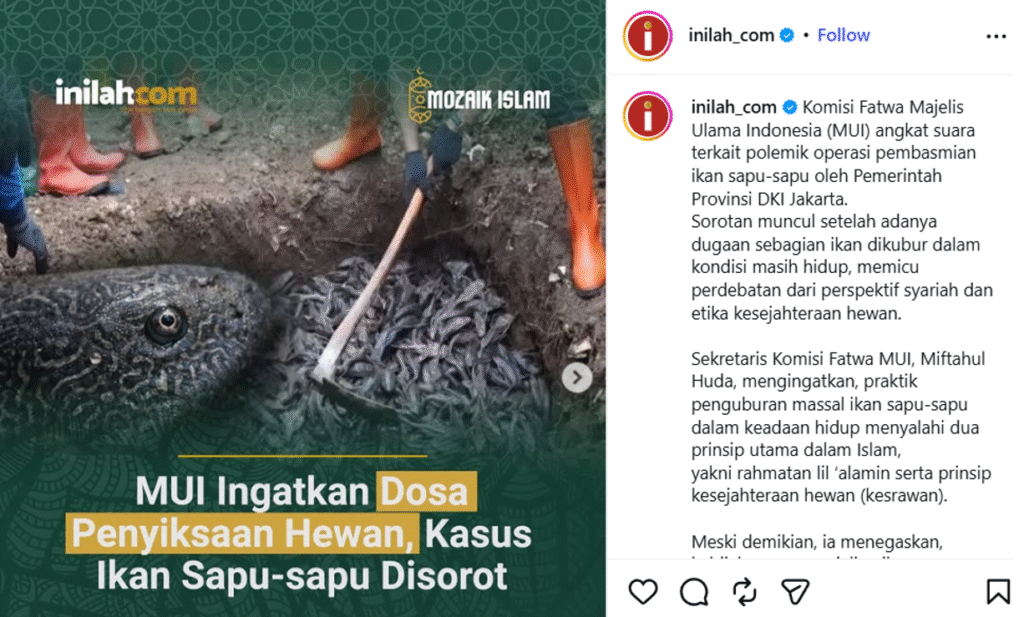 Kritik MUI terhadap Metode Penguburan Ikan Sapu-sapu, dinilai sebagai “Tidak Memerhatikan Kesejahteraan Hewan”