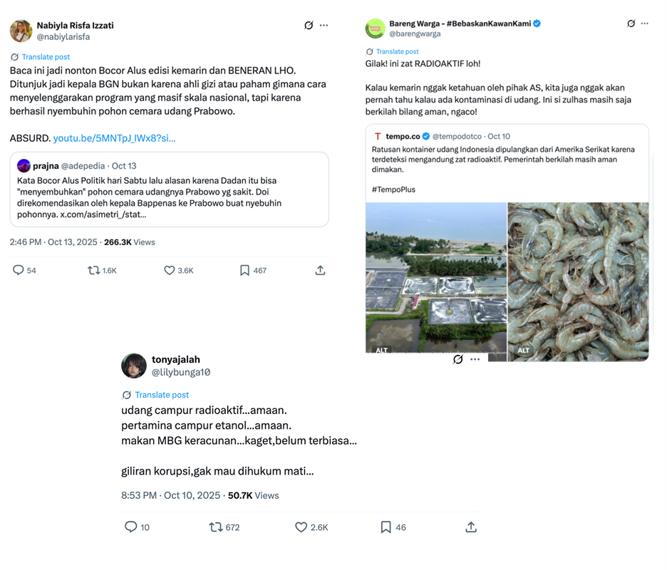 The term #UdangRadioaktif (radioactive shrimp) trended nationwide after Reuters and AP reported the FDA findings. On X (formerly Twitter), public discussion exploded with hashtags #Cikande, #Cs137, and #KeamananPangan (food safety).