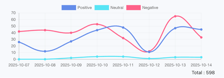 Interestingly, sentiment shifted on 10 October, when official government accounts — @Bapeten, @KemenLHK, @BPOM_RI, and @KKPgoid — began releasing transparent updates assuring the public that radiation levels were “within safe limits” and that the situation was under control. This proactive communication led to a brief surge of positive sentiment before skepticism returned days later.
