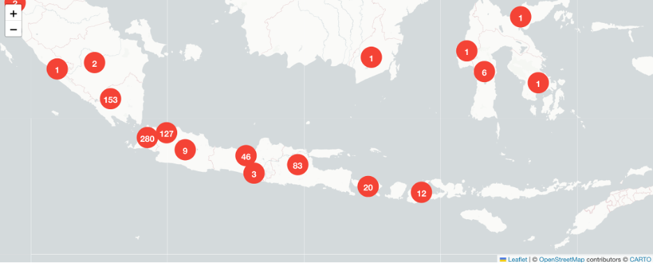 The highest intensity of coverage appeared in Jakarta (280 articles) — the country’s news epicenter — followed by South Sumatra (153) and East Java (127). Smaller but notable clusters appeared in Bali (20), Nusa Tenggara (12), Sulawesi (6), and Kalimantan–Papua (1–3).