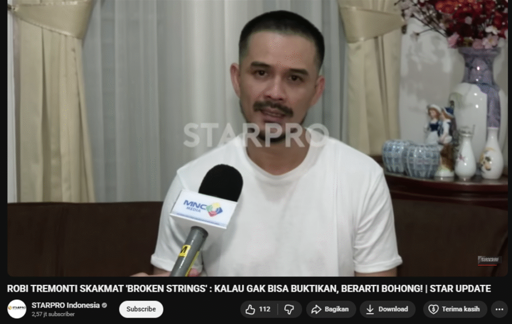 Amid the pro-and-con debate around “Broken Strings,” Tengku Zanzabella offered a different perspective regarding Roby Tremonti’s position. She emphasized the importance of the presumption of innocence and reminded the public not to immediately assume someone is guilty based solely on a one-sided narrative in a memoir. Zanzabella also criticized the rise of “netizen courts,” which she believed close space for clarification and can turn into character assassination. Her statement sparked further debate on social media.