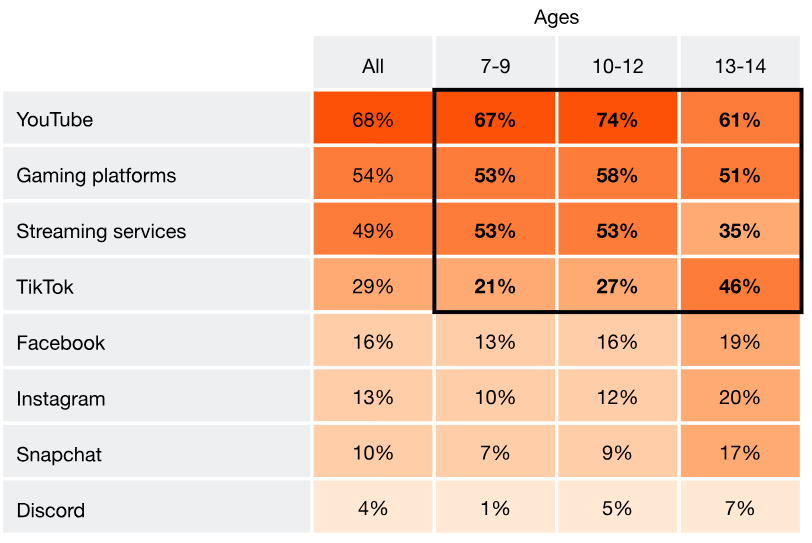 Understanding Gen Alpha and consumer behavior no longer starts at the store shelf. It starts on a screen. PwC found that 61% of Gen Alpha respondents said social media influences their desire to buy something. At the same time, 68% regularly use YouTube, 54% use gaming platforms, and 49% use streaming services. TikTok also shows an interesting pattern: regular usage rises from 21% among children aged 7–9 to 46% among those aged 13–14.