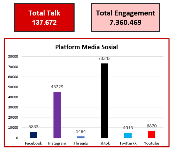 Based on the same data, public sentiment toward this policy was dominated by a neutral stance at 69 percent, while negative sentiment stood at 17 percent and positive sentiment at 14 percent. In terms of platform distribution, most netizens discussed the policy on TikTok and Instagram, with comments on posts being the most common form of conversation.