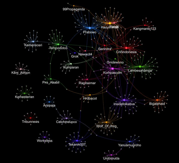 “The main clusters were formed around accounts such as @Prabowo, @Hasyimmah, @pandji, @Gerindra, and several mainstream news media accounts. This structure shows that the public receives information from various sources with different framings, then expands the conversation’s reach into other clusters,” said Ridho.
